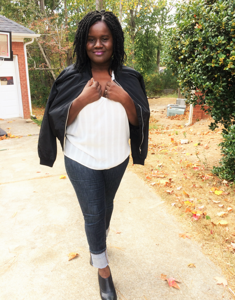 In all honesty, I am a cardigan kind of girl. But this trendy jacket is definitely something that I will wear when I want to get out of my comfort zone. The jacket obviously adds an extra edge to the outfit. Draping a bomber jacket over your shoulders like a cape also make the outfit look more sophisticated.